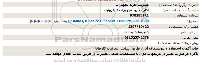 اداره برگزارکننده استعلام: اداره خرید تجهیزات هیدرولیک
