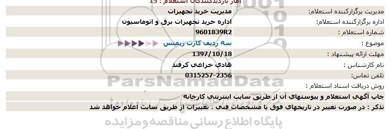 اداره برگزارکننده استعلام: اداره خرید تجهیزات برق و اتوماسیون