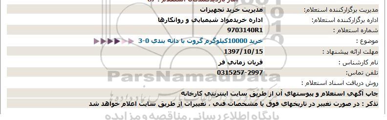 موضوع : خرید 10000 کیلوگرم گروت با دانه بندی 0-3