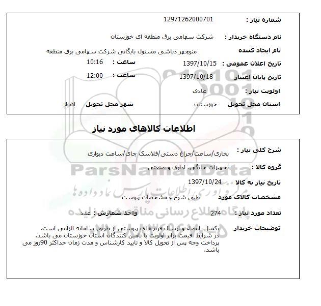 نام دستگاه خریدار: شرکت سهامی برق منطقه ای خوزستان
