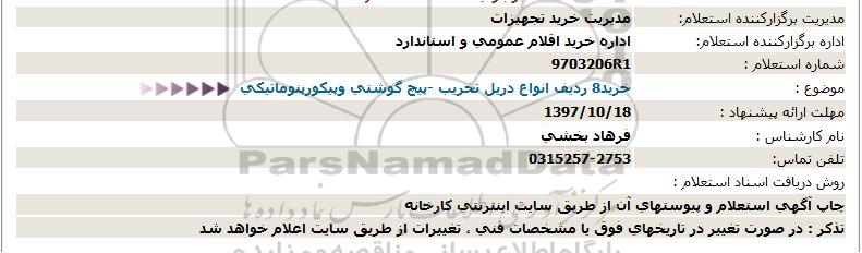 اداره برگزارکننده استعلام: اداره خرید اقلام عمومی و استاندارد