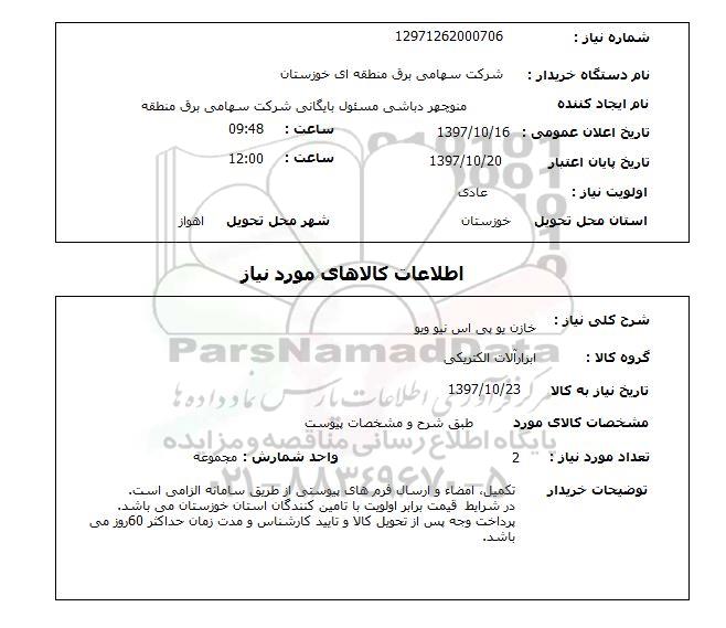 نام دستگاه خریدار: شرکت سهامی برق منطقه ای خوزستان