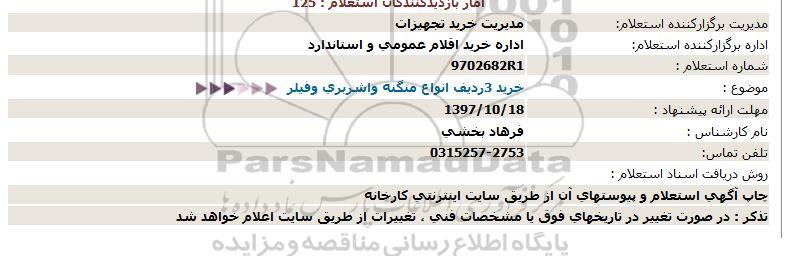 موضوع : خرید 3 ردیف انواع منگنه واشربری و فیلر