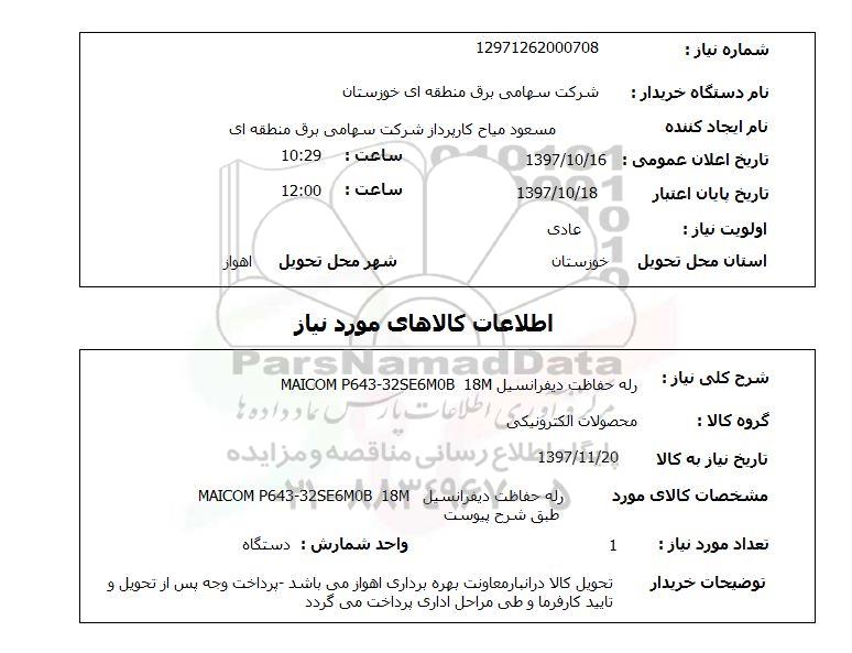 شرح کلی نیاز: رله حفاظت دیفرانسیلMAICOM P643-32SE6M0B 18M