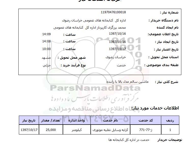 1 ژ-77-771 کرایه وسایل نقلیه موتوری  کیلومتر  25.000 97.10.17