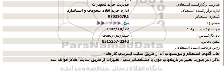 اداره برگزارکننده استعلام: اداره خرید اقلام عمومی و استاندارد