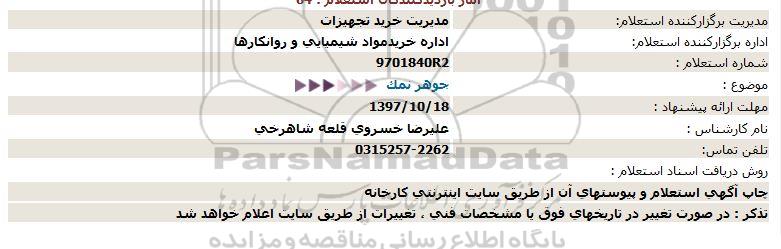 اداره برگزارکننده استعلام: اداره خریدمواد شیمیایی و روانکارها