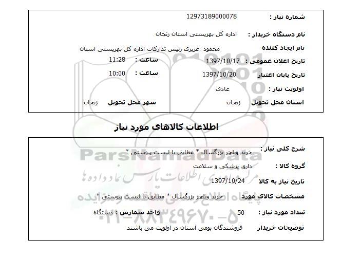 نام دستگاه خریدار: اداره کل بهزیستی استان زنجان