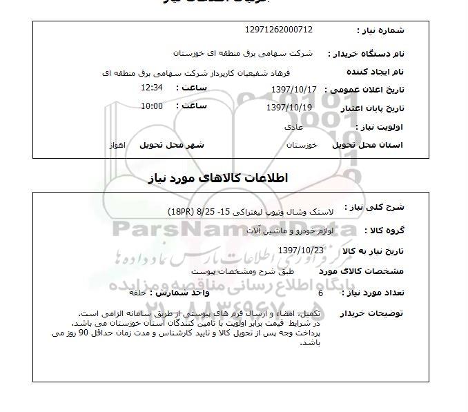 شماره نیاز: 12971262000712
