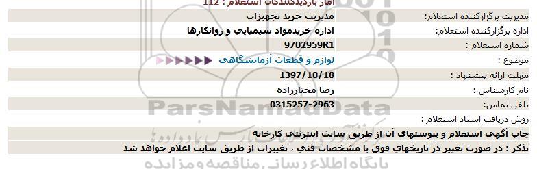 اداره برگزارکننده استعلام: اداره خرید مواد شیمیایی و روانکارها