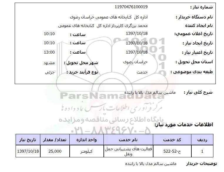 نام دستگاه خریدار : اداره کل کتابخانه های عمومی خراسان رضوی
