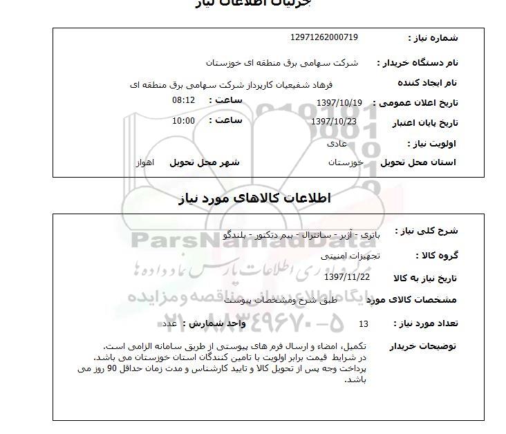 نام دستگاه خریدار شرکت سهامی برق منطقه ای خوزستان