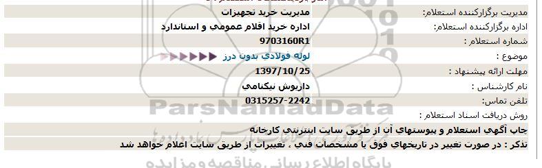 اداره برگزارکننده استعلام: اداره خرید اقلام عمومی و استاندارد