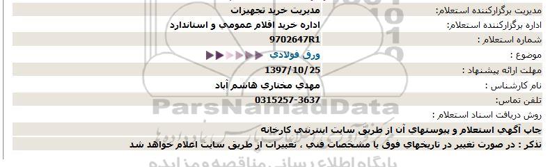 استعلام ورق فولادی , استعلام ,استعلام ورق فولادی