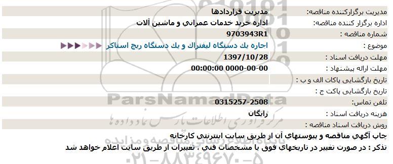 موضوع :  اجاره یک دستگاه لیفتراک و یک دستگاه ریچ استاکر