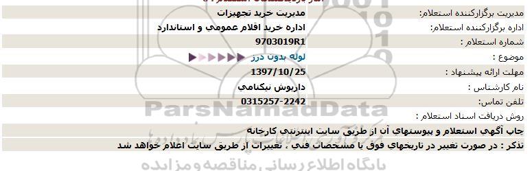 اداره برگزارکننده استعلام: اداره خرید اقلام عمومی و استاندارد
