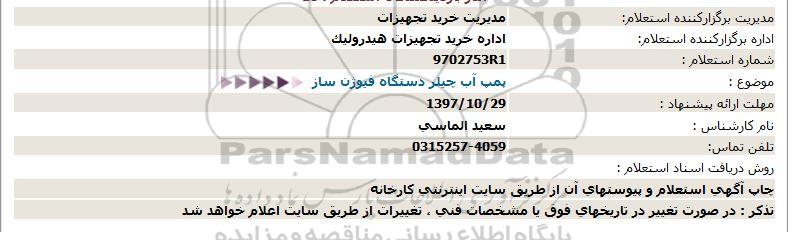 استعلام پمپ آب چیلر دستگاه فیوژن ساز , استعلام, استعلام پمپ آب چیلر دستگاه فیوژن ساز