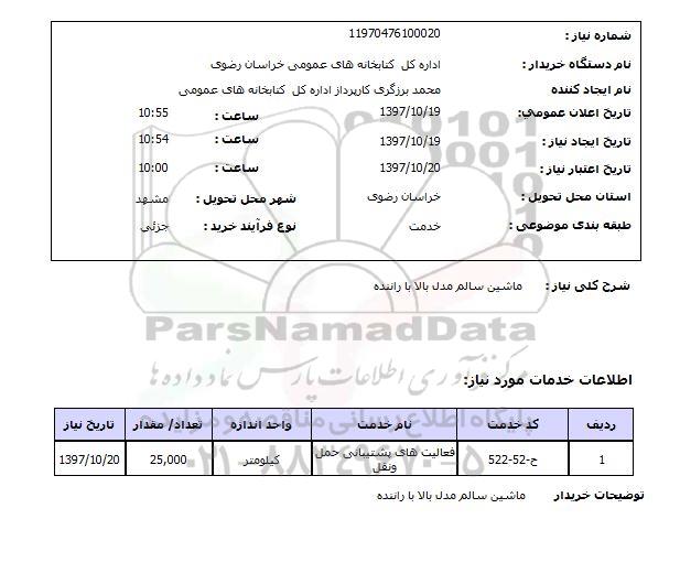نام دستگاه خریدار: اداره کل کتابخانه های عمومی خراسان رضوی