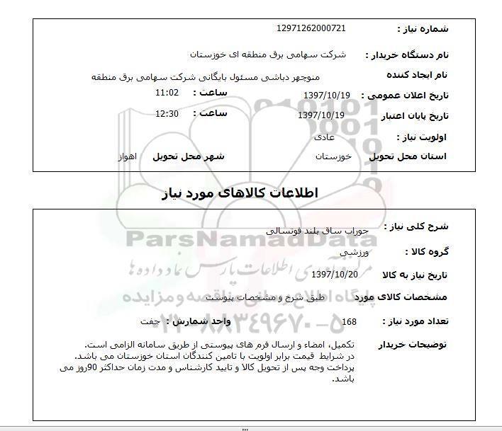 نام دستگاه خریدار: شرکت سهامی برق منطقه ای خوزستان