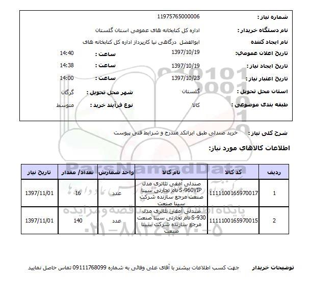 نام دستگاه خریدار: اداره کل کتابخانه های عمومی استان گلستان