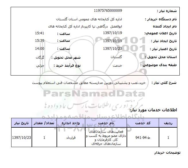 نام دستگاه خریدار: اداره کل کتابخانه های عمومی استان گلستان