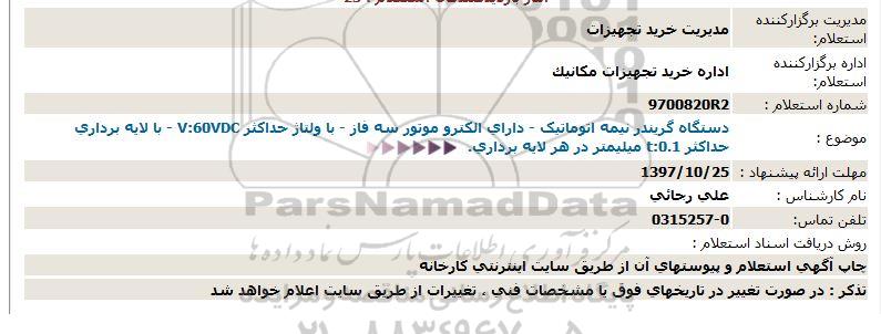 موضوع : با لایه برداری v60vdc دستگاه گریندر نیمه اتوماتیک -دارای الکتروموتور سه فاز - با ولتاژ حداکثر میلیمتر در هر لایه برداری 0.1