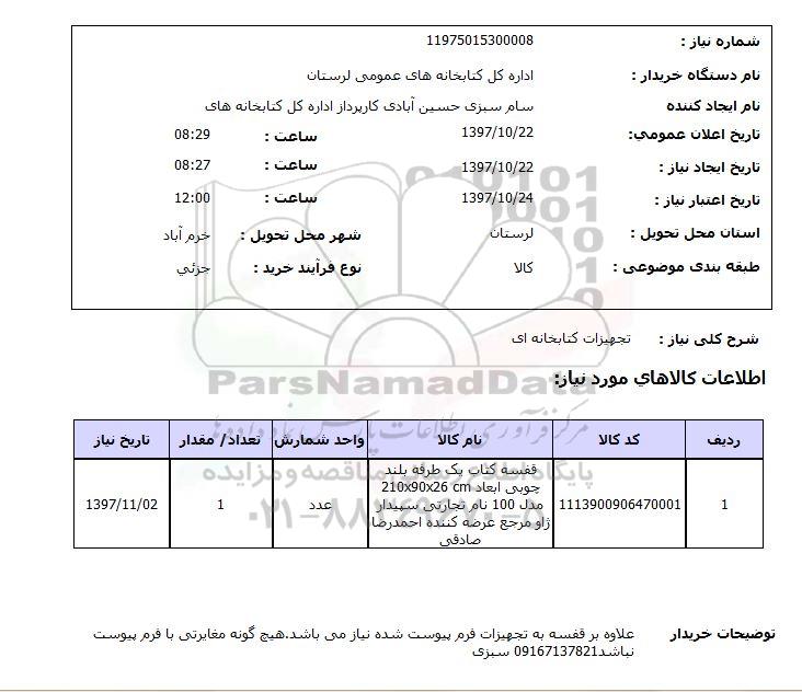 نام دستگاه خریدار : اداره کل کتابخانه های عمومی لرستان