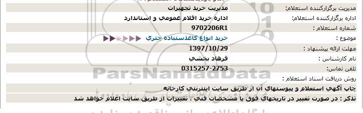 اداره برگزارکننده استعلام: اداره خرید اقلام عمومی و استاندارد
