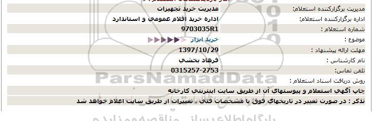 اداره برگزارکننده استعلام: اداره خرید اقلام عمومی و استاندارد