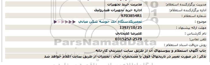 اداره برگزار کننده مناقصه: اداره خرید تجهیزات هیدرولیک