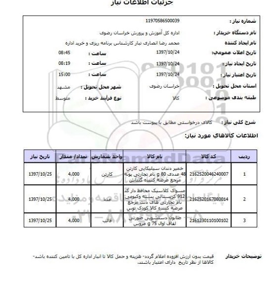 نام دستگاه خریدار : اداره کل آموزش و پرورش خراسان رضوی