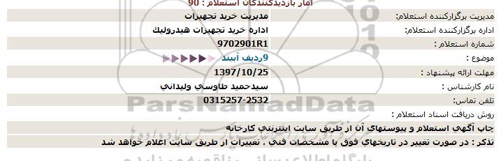 اداره برگزارکننده استعلام: اداره خرید تجهیزات هیدرولیک