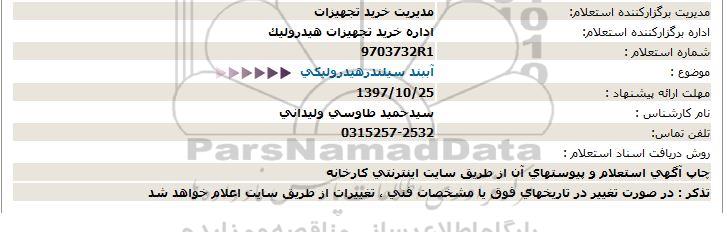 اداره برگزارکننده استعلام: اداره خرید تجهیزات هیدرولیک