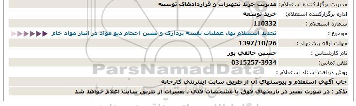 موضوع : تجدید استعلام بهاء عملیات نقشه برداری و تعیین احجام دپو مواد در انبار مواد خام