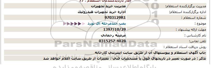 اداره برگزارکننده استعلام: اداره خرید تجهیزات هیدرولیک