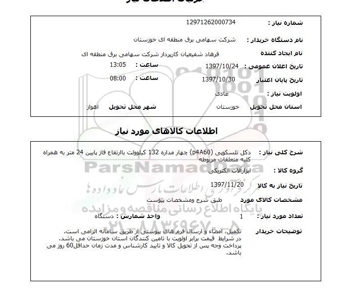 نام دستگاه خریدار : شرکت سهامی برق منطقه ای خوزستان