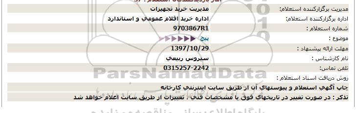 اداره برگزارکننده استعلام: اداره خرید اقلام عمومی و استاندارد
