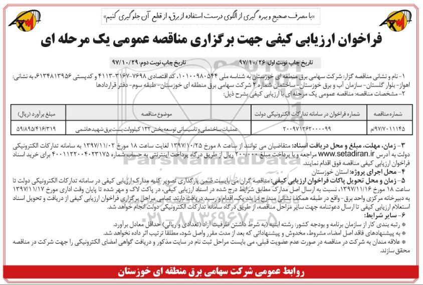 فراخوان ارزیابی کیفی جهت برگزاری مناقصه عمومی یک مرحله ای ؟
