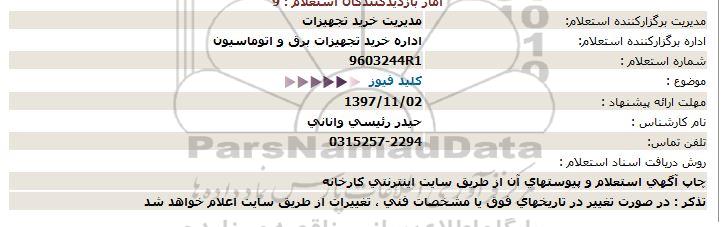 اداره برگزارکننده استعلام: اداره خرید تجهیزات برق و اتوماسیون