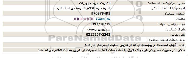 اداره برگزارکننده استعلام: اداره خرید اقلام عمومی و استاندارد