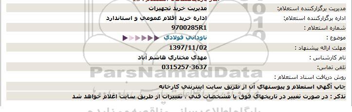 اداره برگزارکننده استعلام: اداره خرید اقلام عمومی و استاندارد