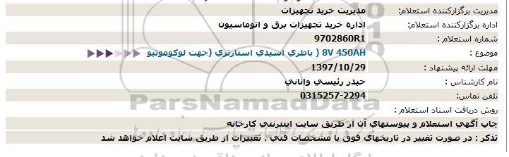 موضوع: باطری اسیدی استارتر (جهت لوکوموتیو) 87450AH