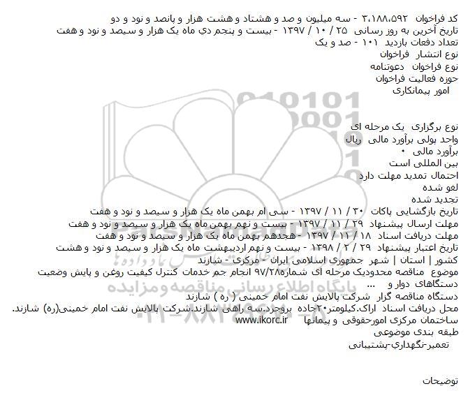 موضوع مناقصه محدودیک مرحله ای شماره۲۸/۹۷ انجام جم خدمات کنترل کیفیت روغن و پایش وضعیت دستگاهای دوار و...