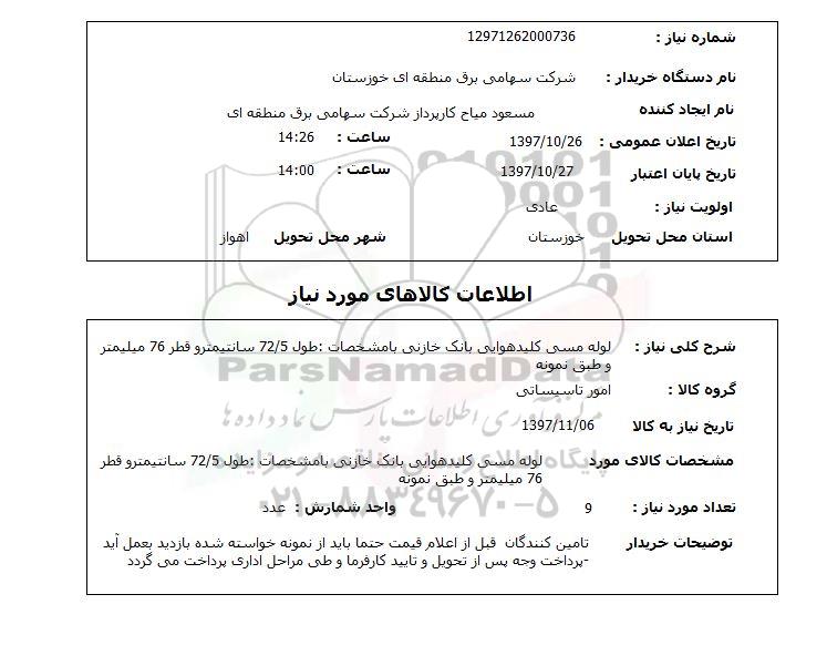 نام دستگاه خریدار: شرکت سهامی برق منطقه ای خوزستان