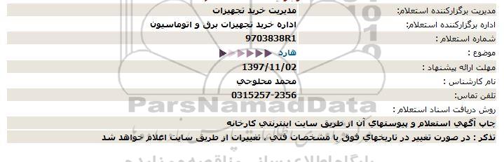 اداره برگزارکننده استعلام: اداره خرید برق و اتوماسیون