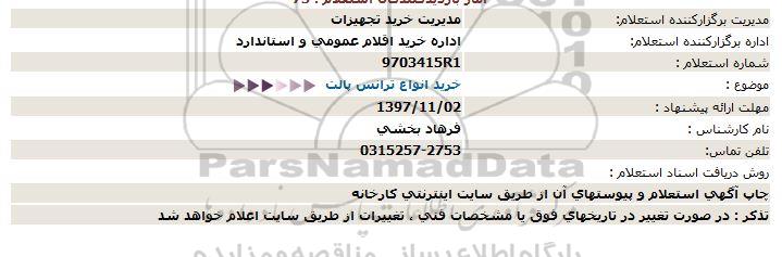 اداره برگزارکننده استعلام: اداره خرید اقلام عمومی و استاندارد