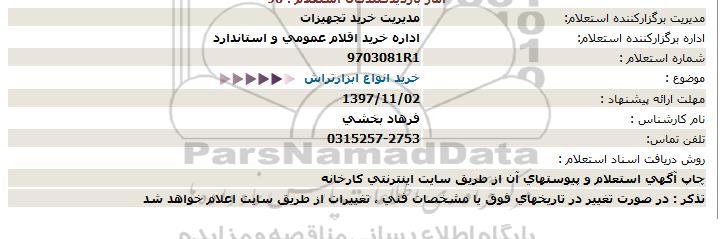 اداره برگزارکننده استعلام: اداره خرید اقلام عمومی و استاندارد