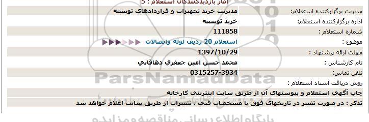 موضوع: استعلام خرید 20 ردیف لوله و اتصالات