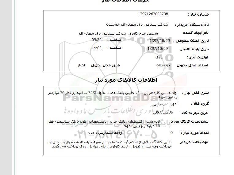 شماره نیاز 12971262000738