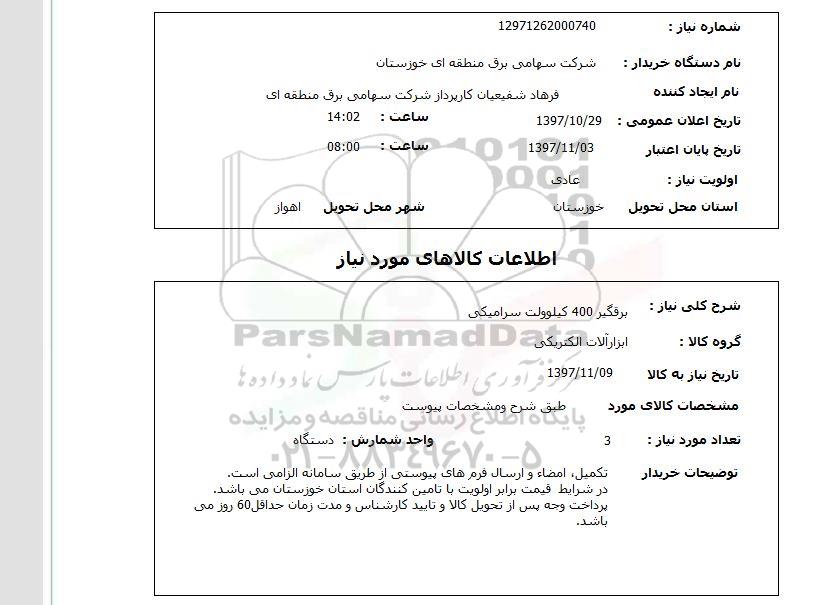 نام دستگاه خریدار: شرکت سهامی برق منطقه ای خوزستان